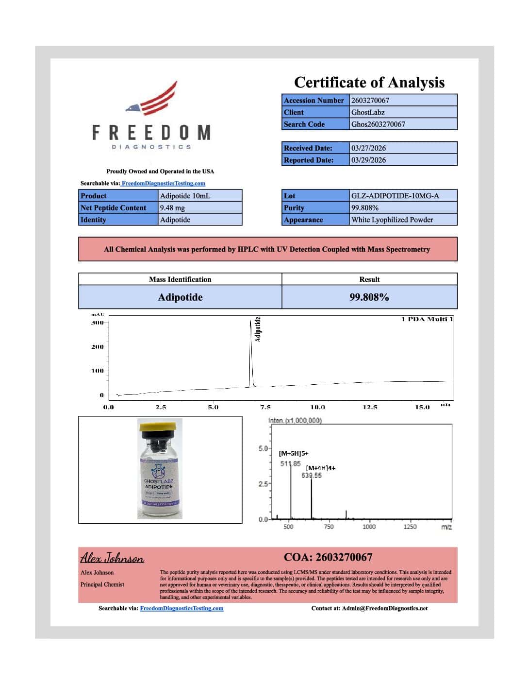 Adipotide is an experimental compound not approved by any regulatory agency. It is sold strictly for laboratory and research purposes only.