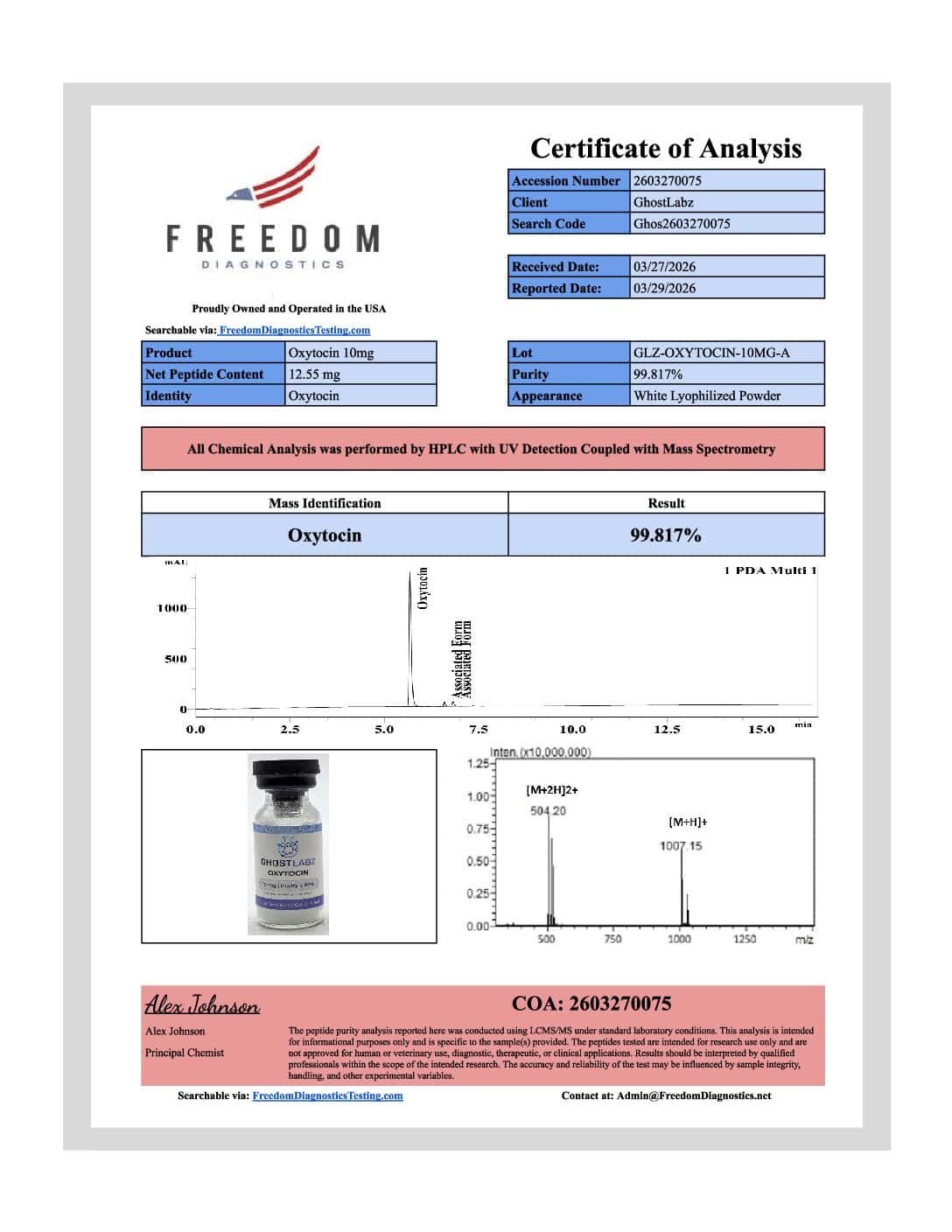 Synthetic oxytocin (Pitocin) has been FDA-approved for decades for the induction of labor and management of postpartum hemorrhage. Research-grade oxytocin is studied in preclinical and clinical settings for its effects on social behavior, anxiety, and neuroendocrine function.